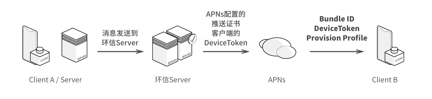 APNs 是苹果官方提供的推送解决方案,主要用于在 app 处于不活跃状态时向设备发送实时通知。使用环信即时通讯 IM SDK 时,当消息接收方不在线,环信即时通讯 IM 的服务器会通过苹果的 APNs 服务向接收方设备发消息推送,该服务器会暂时保存这些消息,等用户再次上线时通过环信即时通讯 IM 的长连接投递。同时开发者可根据需要设置推送的显示样式,免打扰时间段等。